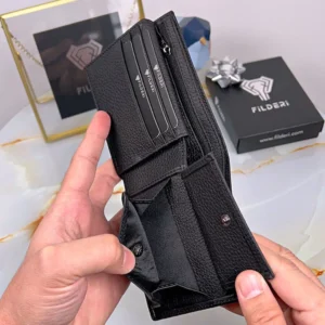 Herren-Geldbörse – Schwarzes Echtleder, Reißverschluss, Guti | 2002