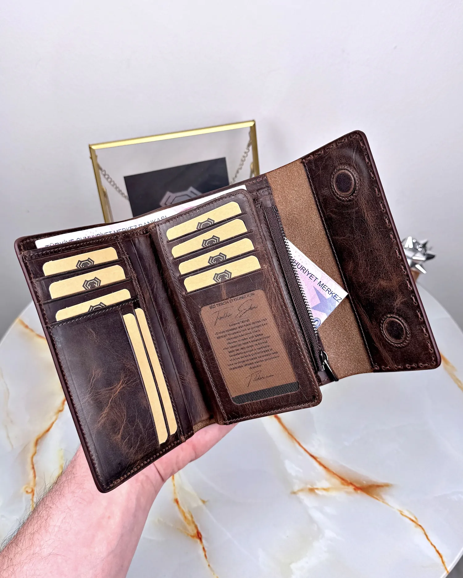 Damengeldbörse – Echtleder mit Ziernähten | 2095