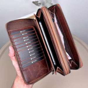 Geldbörse aus echtem Leder mit Handyfach – mit Handgriff | 2028