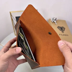 Handgenähte Ledergeldbörse mit Überschlag – Echtes Leder, Haselnussbraun | 2086