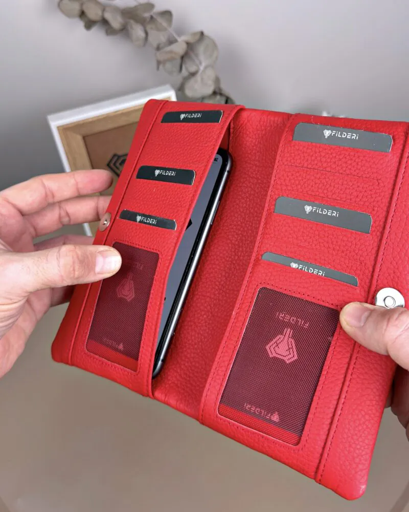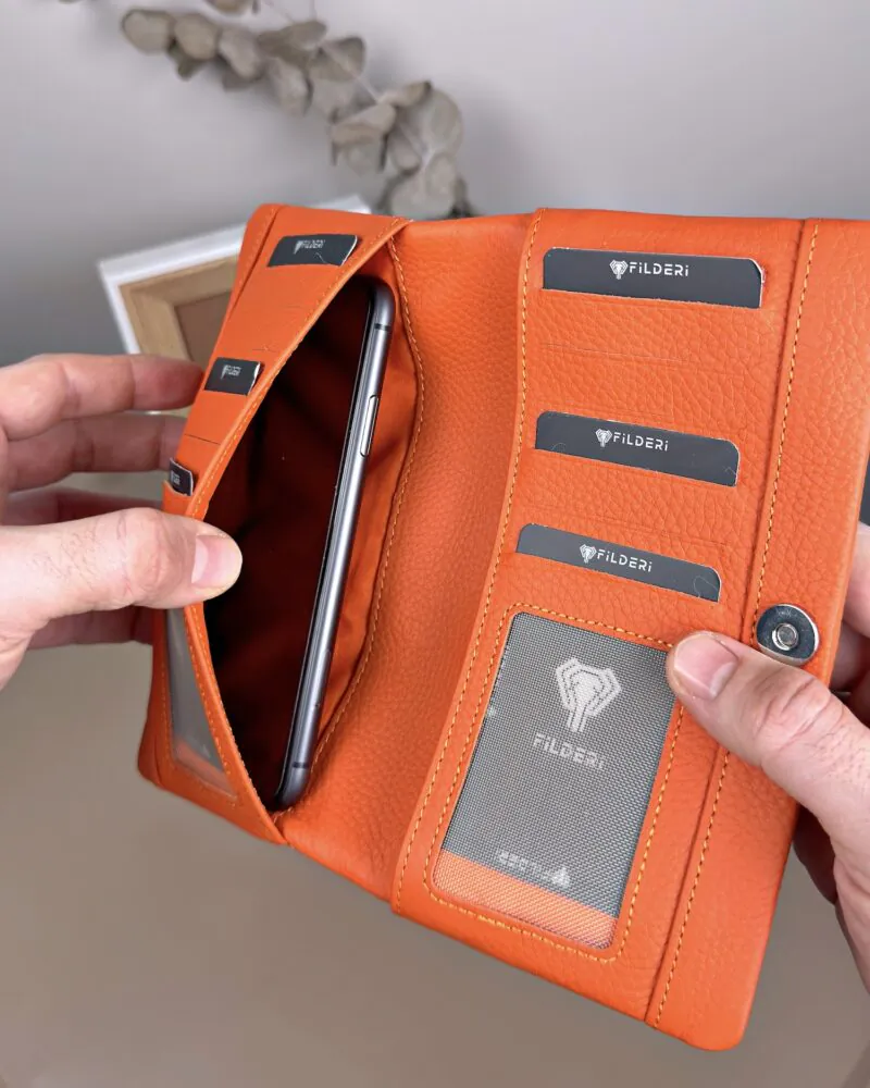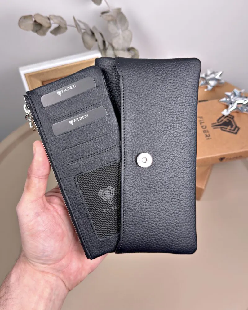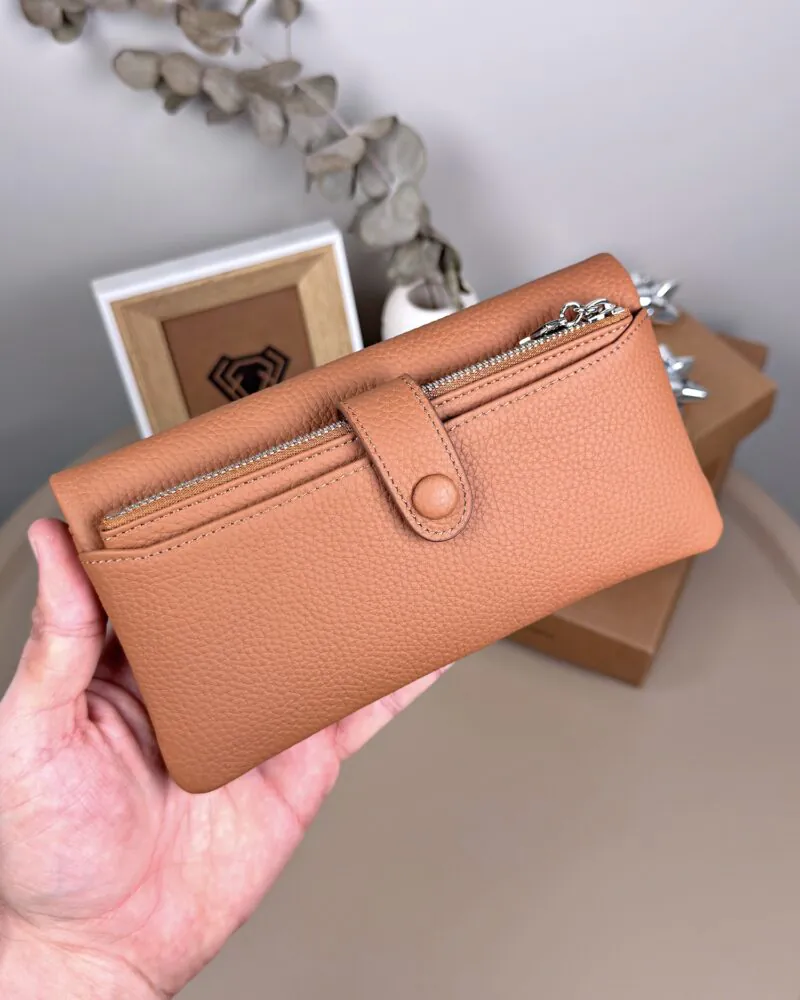 Geldbörse aus echtem Leder mit Handyfach – mit Handgriff | 2028