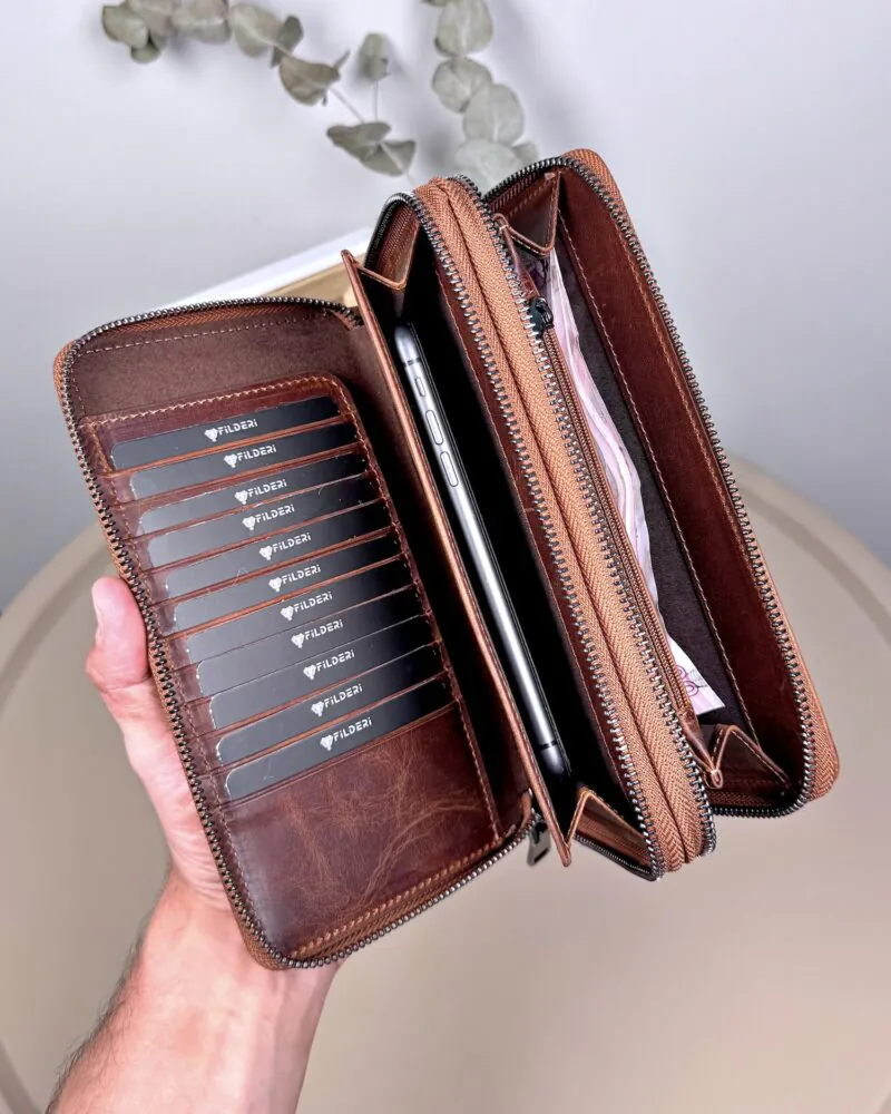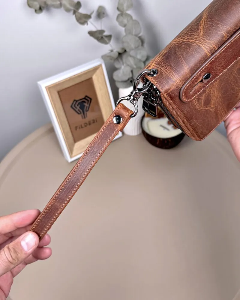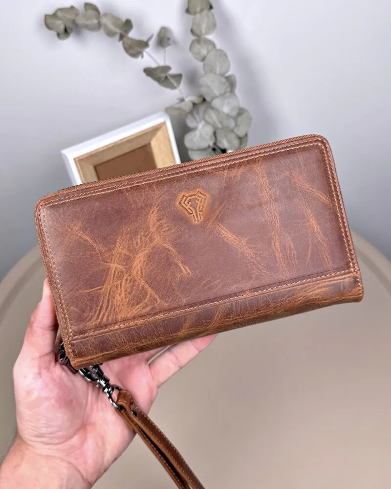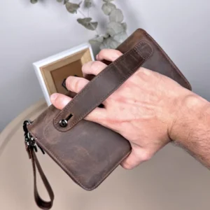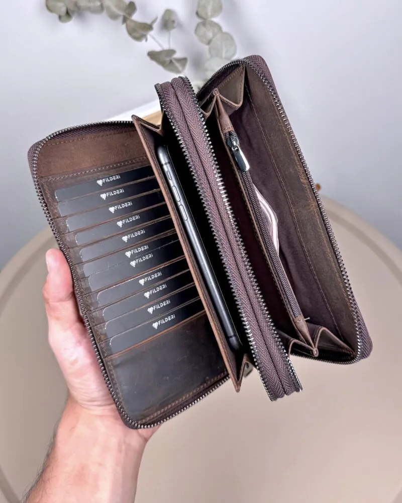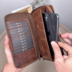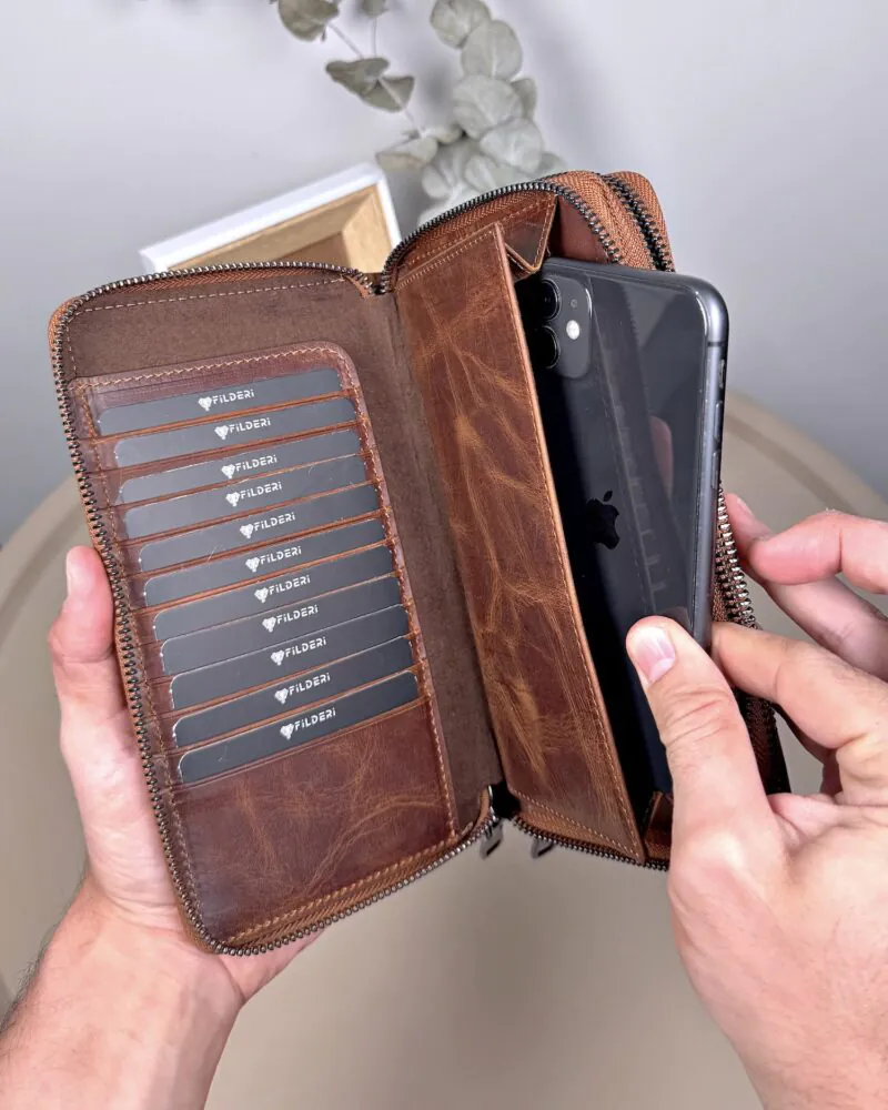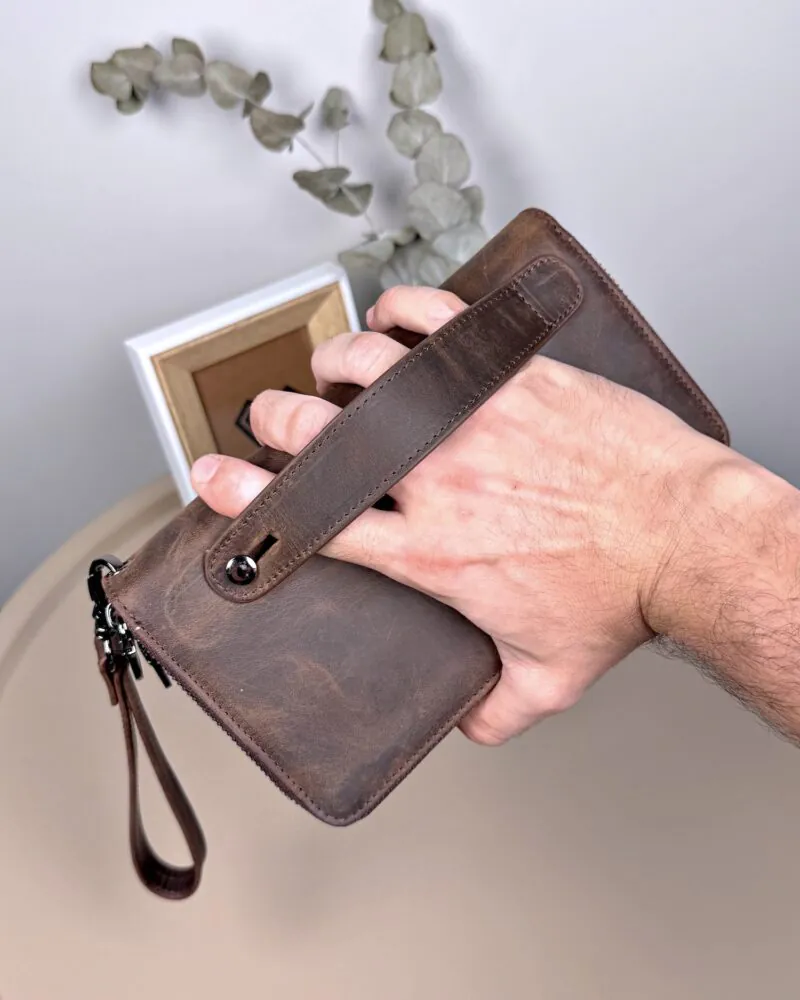 Geldbörse aus echtem Leder mit Handyfach – mit Handgriff | 2028