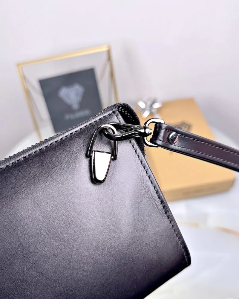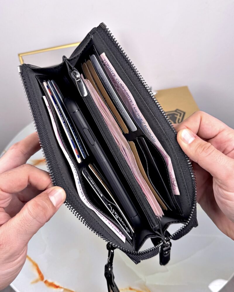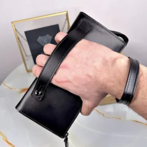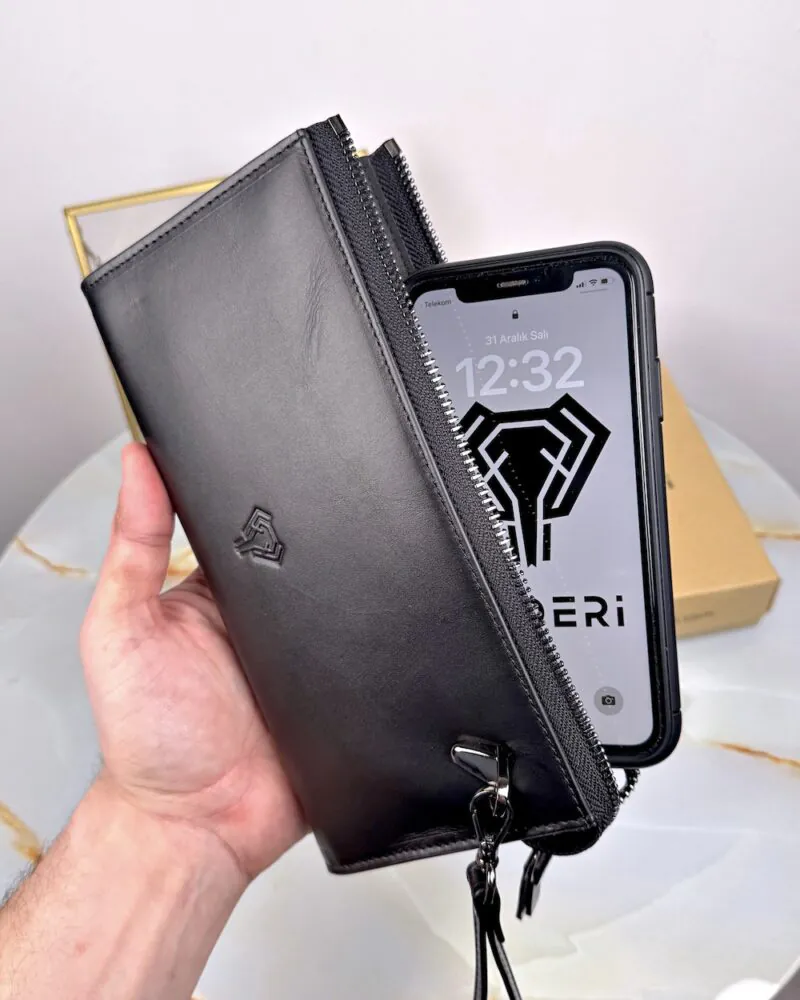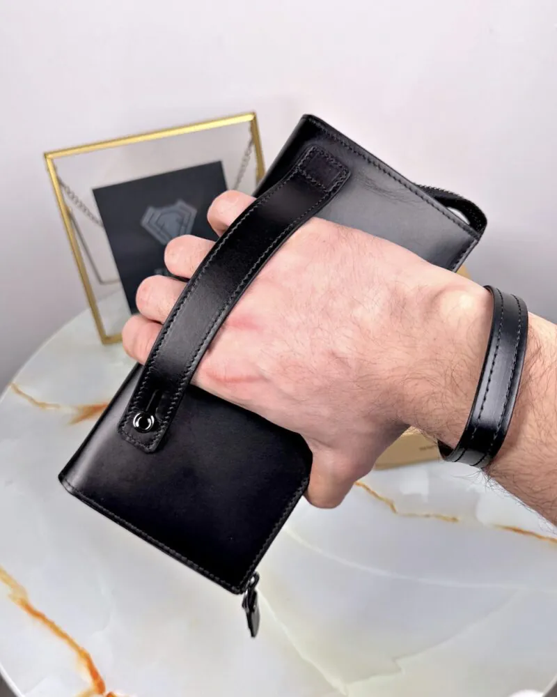 Herrenhandtasche – mit Handyfach, schwarzes Echtleder | 2089