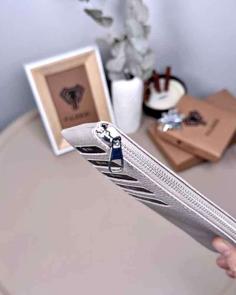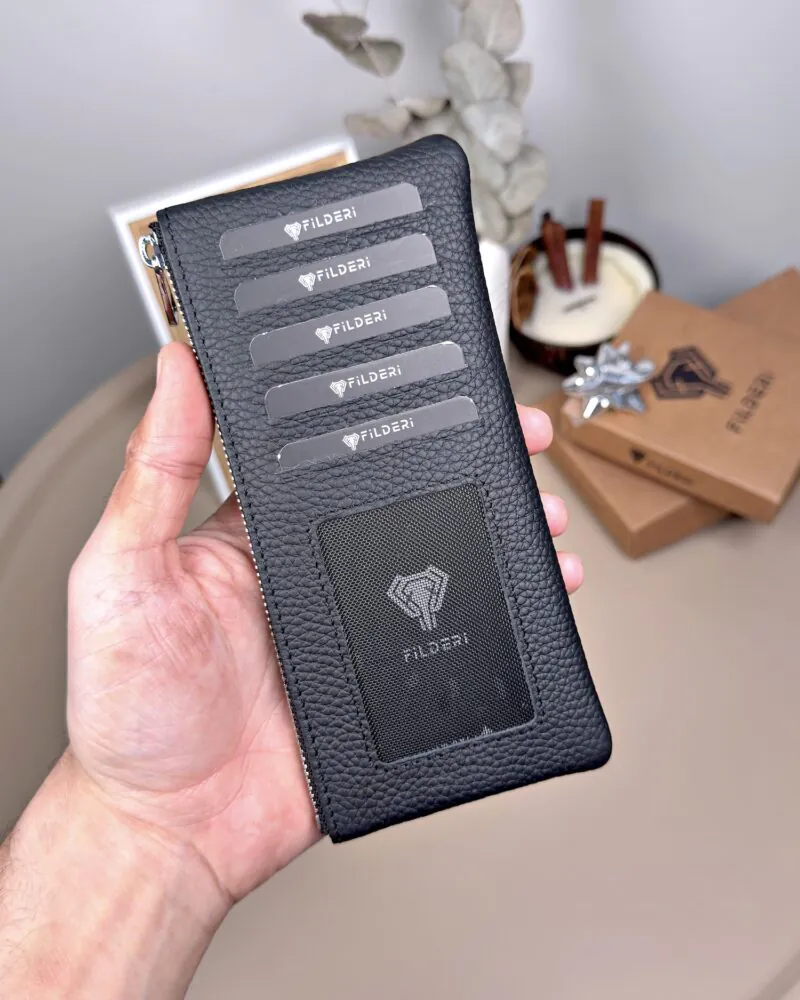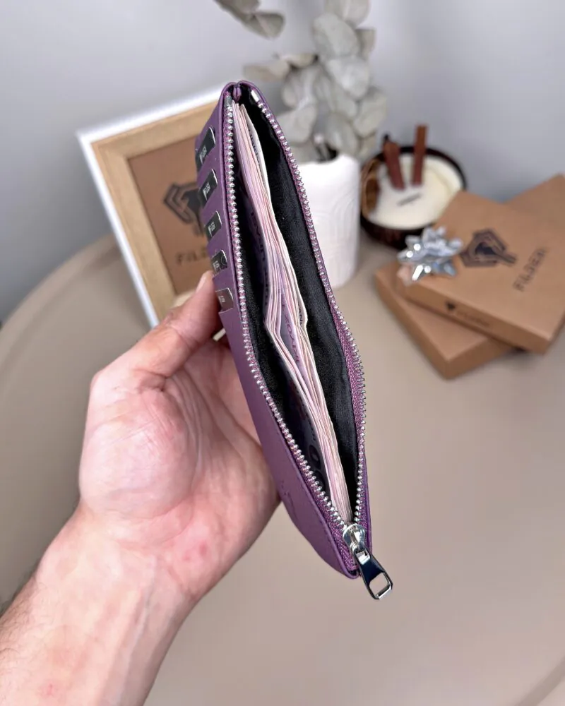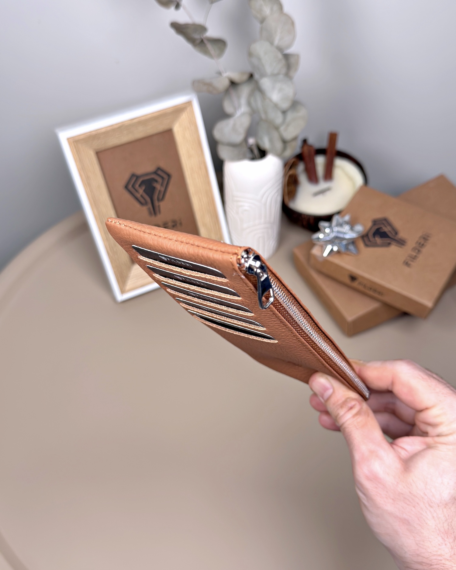 Hohes Kartenetui aus echtem Leder – mit Reißverschluss | 2127