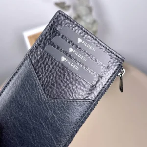 Hohes Kartenetui aus echtem Leder – mit Reißverschluss | 2127